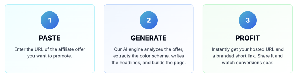 You paste your target URL. The AI does two critical things: first, it analyzes the copy to understand the offer; second, and most impressively, it extracts the dominant color scheme from the destination page. It then generates a page using those colors. This “chameleon” effect means your bridge page feels visually connected to the final sales page. The transition for the user is seamless, which subconsciously builds trust. You’re not sending someone from a blue-themed landing page to a red sales page – it feels like part of the same journey.