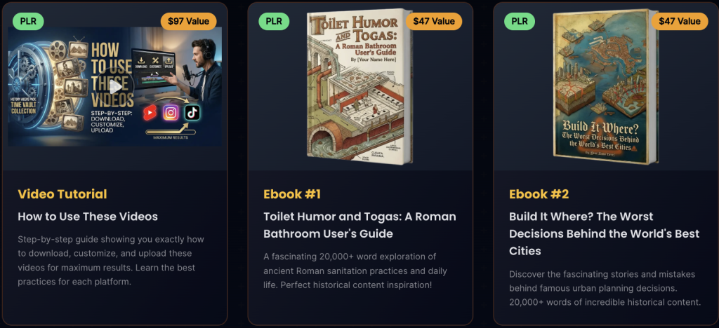 The (PLR) History Videos Pack – Time Vault Collection won’t automatically grant you a million followers. What it will do is remove the single biggest barrier for most of us: the unsustainable time and resource cost of producing consistent, quality short-form video.