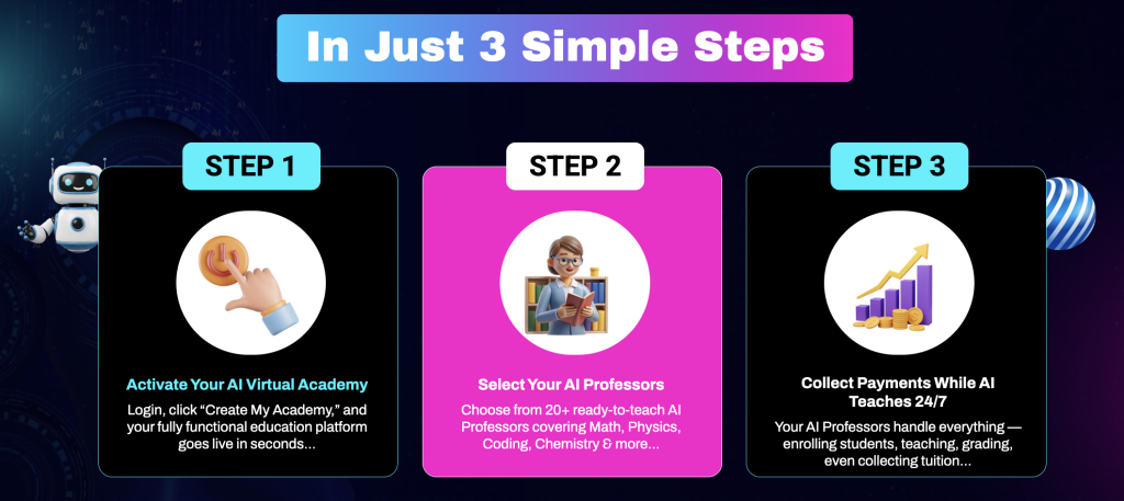 - 24/7 AI Professor Engine: The core product. Your academy teaches students in every time zone, infinitely patient and always available.
