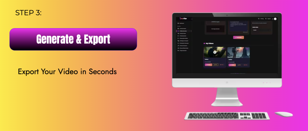 The ability to instantly transform a simple idea into a persuasive, professional video is no longer a competitive advantage – it’s becoming a baseline requirement. See for yourself why AI Clips has become the most indispensable tool in our agency’s tech stack.