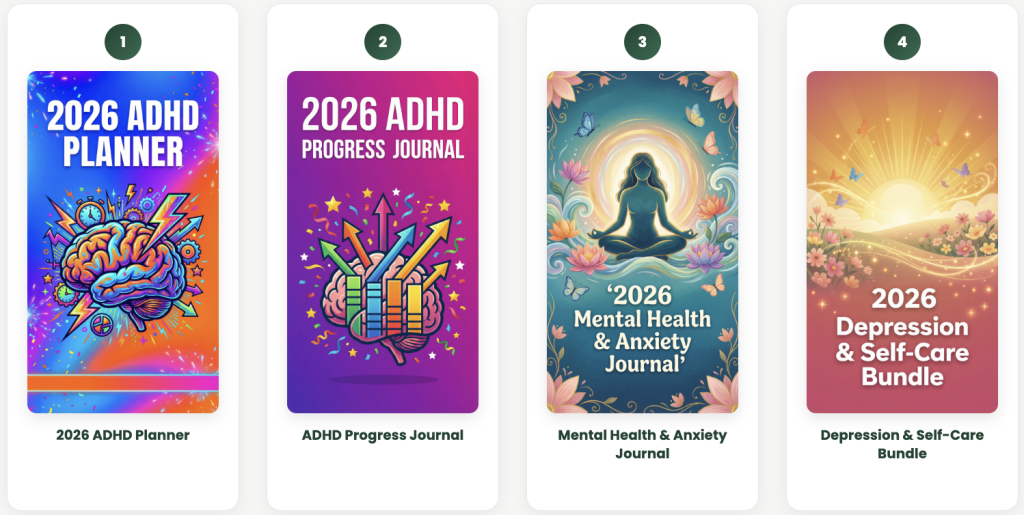 ADHD planners, anxiety journals, depression workbooks, PTSD recovery guides, self-care bundles. These aren’t generic “wellness” templates. They’re structured for specific conditions, which matters for KDP because buyers search for exactly those terms.