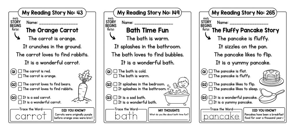 The Little Reader Prompt Vault eliminates that problem. You paste any prompt, and the output follows the same template. The only thing that changes is the content – the story topic, the vocabulary word, the specific questions.