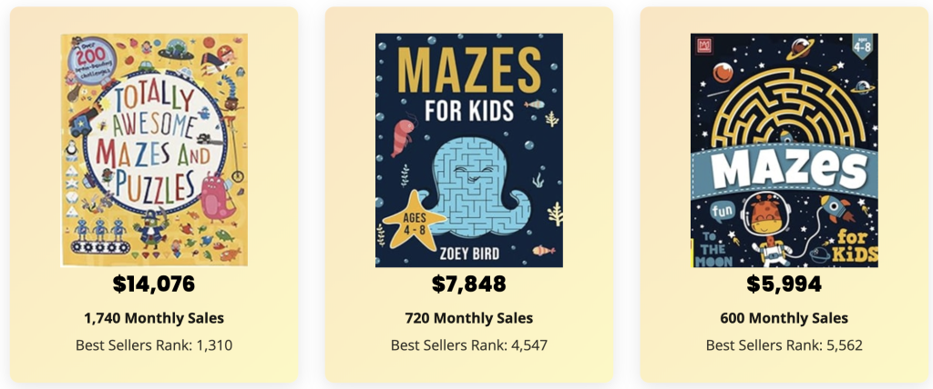 | Jumbo Fun Mazes for Kids | Amazon KDP | $2,518 |