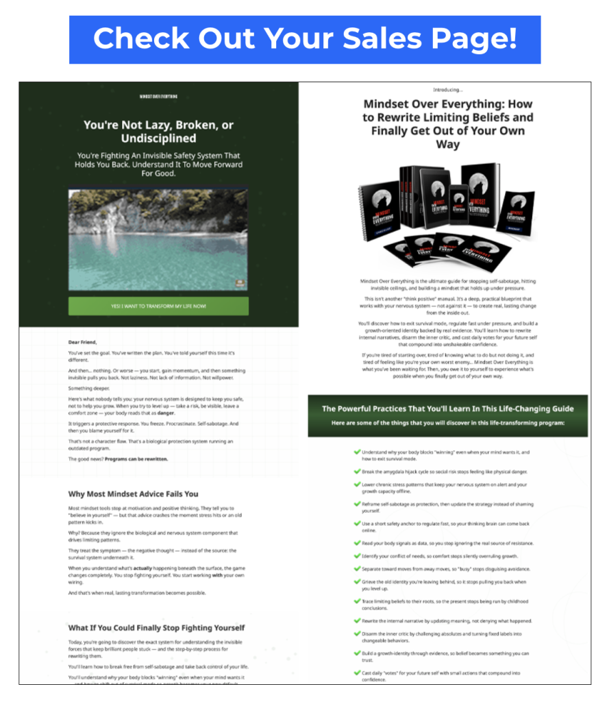 The self-help niche is growing. People are looking for genuine guidance on mindset transformation. The demand is there. The question is whether you want to spend months creating a product to meet that demand, or whether you want to use a done-for-you foundation and focus on getting it in front of the people who need it.