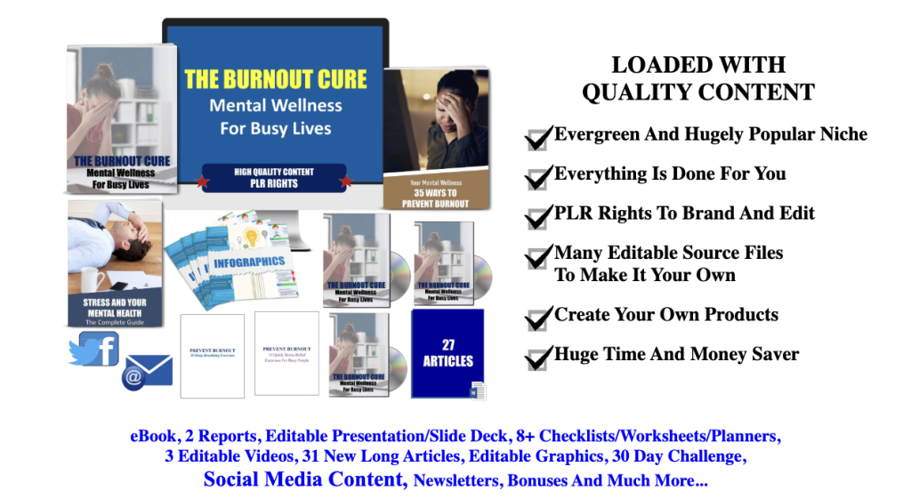 Then, I took a gamble on something many “serious” marketers scoff at: a Private Label Rights (PLR) pack. Not just any pack, but the Burnout Cure: Mental Wellness For Busy Lives bundle.