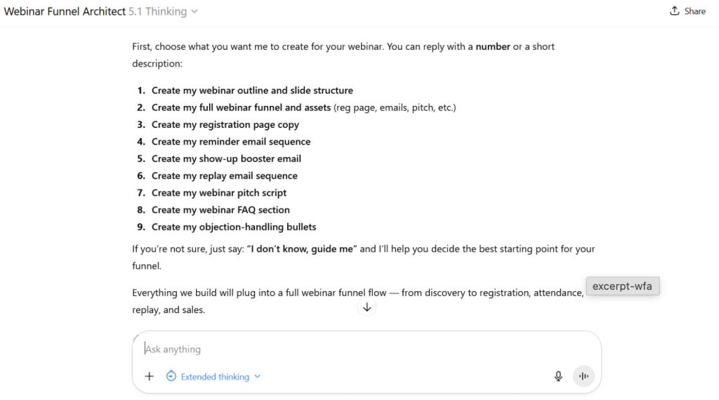 I was ready to give up on webinars for good. Then, in a panic, I bought the (PLR) Webinar Funnel Architect (Premium GPT) on a whim for less than the cost of a lunch delivery. I had zero expectations.