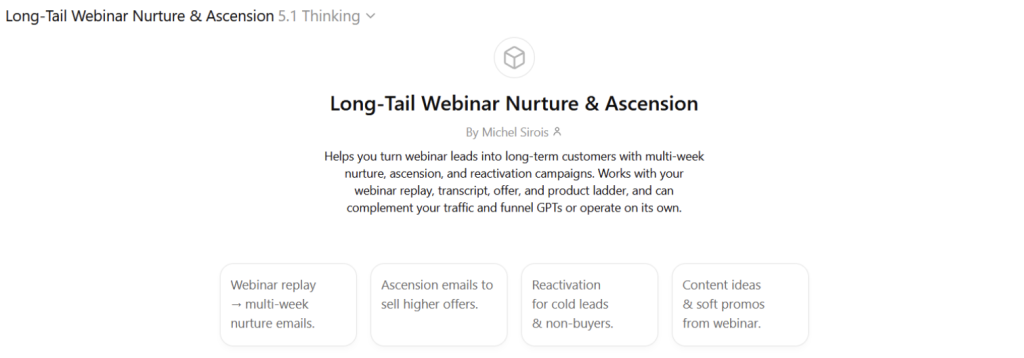 - The Nurture Engine (Bonus #2): This is your sales team. It builds the money-printing, post-webinar sequences to upsell buyers, warm up non-buyers, and reactivate old leads. This is where the real, long-term revenue happens.