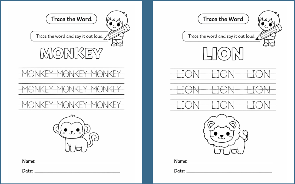 What surprised me most was how little mental energy the process required. Normally, creating worksheets forces you to make hundreds of small decisions. What word comes next. How to phrase the instruction. Where to place the image. What font size for the tracing lines. This pack removes those decisions completely. You just execute.