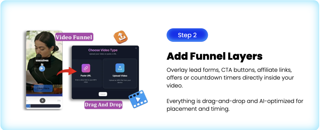 VideoFunnels AI is a cloud-based software that allows you to embed interactive, clickable funnels directly inside your video player.